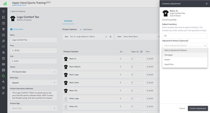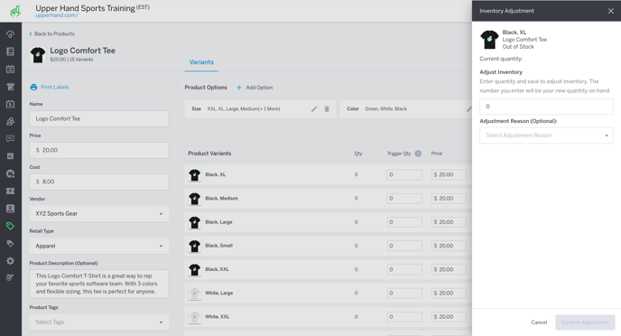 - Once confirmed, your variant qty should update on the product page and on the inventory report