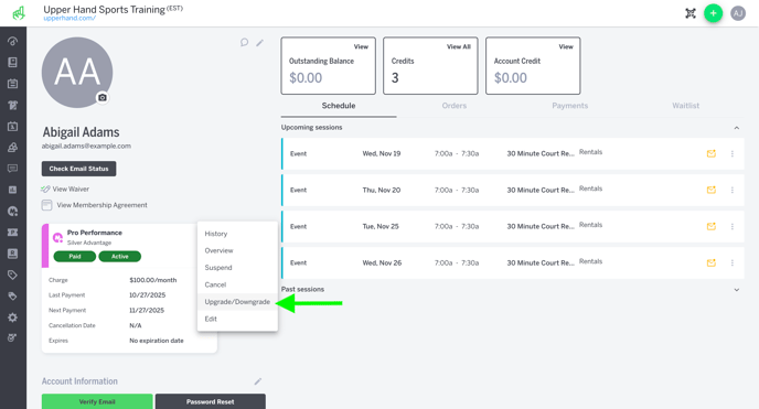 As an Admin, you are able to upgrade or downgrade a client's membership from their Client Profile page.